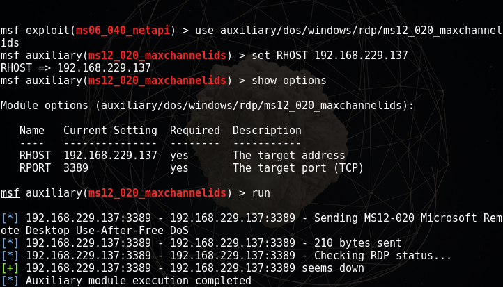 msf > use auxiliary/dos/windows/rdp/ms12_020_maxchannelids