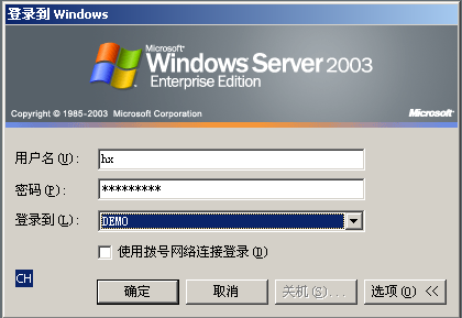 域管理员:DCwin03 域名:demo.com 普通域用户:hx