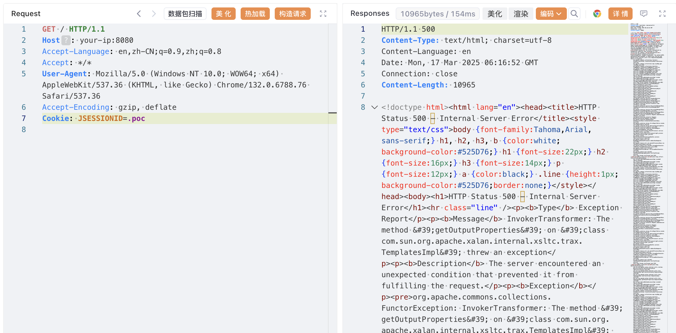 5. 设置 `JSESSIONID=.xxxxx` 触发漏洞。