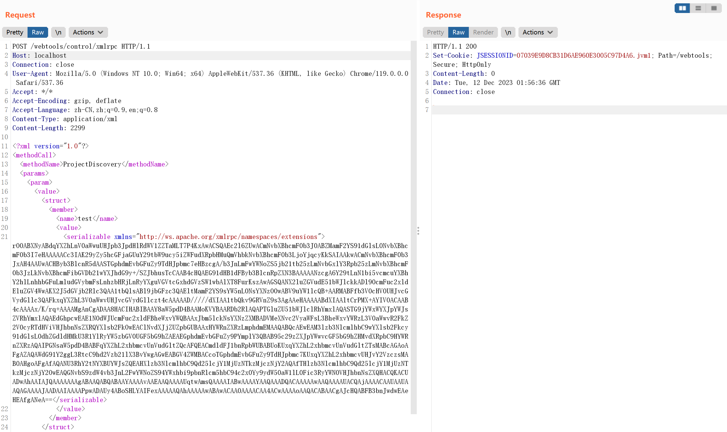 在 Apache OFBiz 17.12.03 版本及以前存在一处 XMLRPC 导致的反序列漏洞,官方于后续的版本中对相关接口进行加固修复漏洞,但修复方法存在绕过问题(CVE-2023-49070),攻击者仍然可以利用反序列化漏洞在目标服务器中执行任意命令。