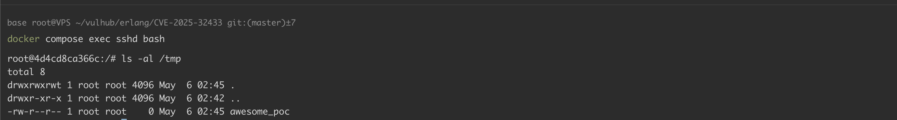 Erlang OTP SSH未授权远程代码执行漏洞 CVE-2025-32433