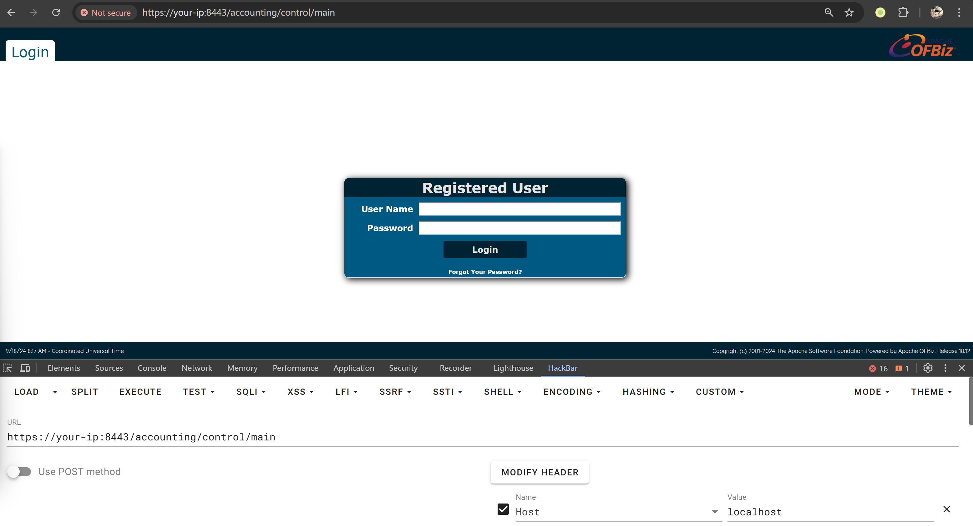 org.apache.ofbiz.webapp.control.RequestHandlerException: Domain your-ip not accepted to prevent host header injection.
