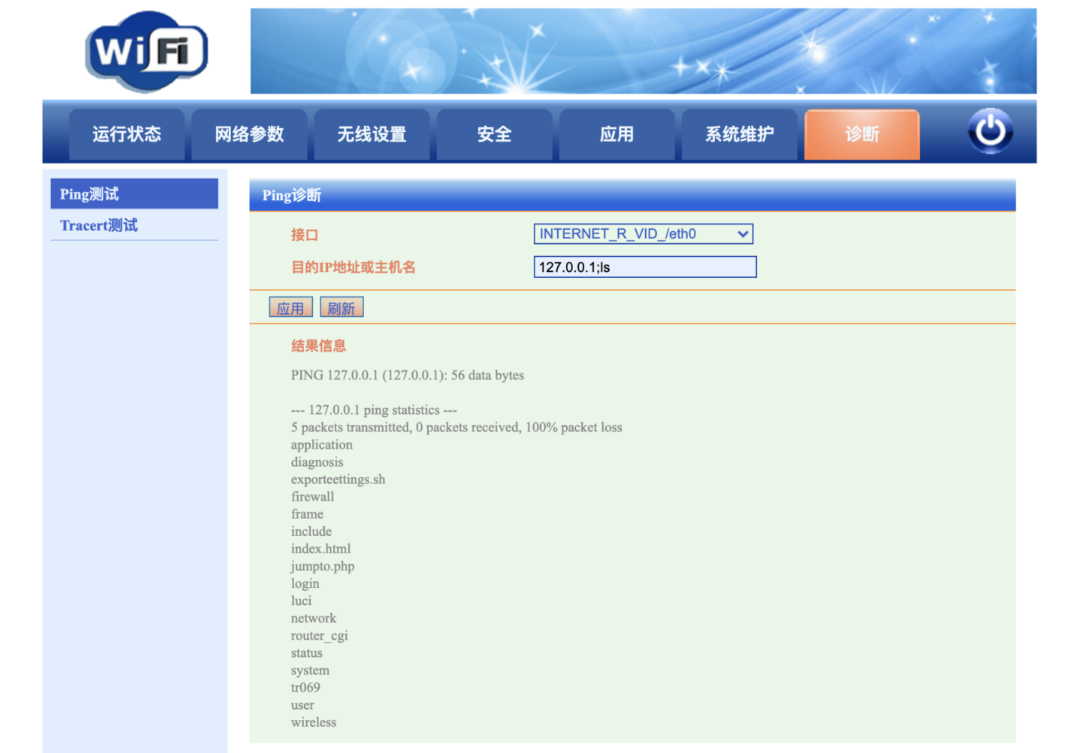 进入后台后,诊断功能点存在命令拼接执行漏洞