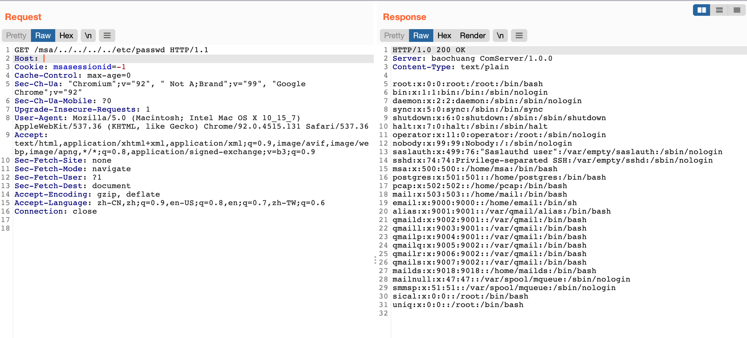 MSA 互联网管理网关存在任意文件读取漏洞,攻击者通过漏洞可以读取服务器任意文件