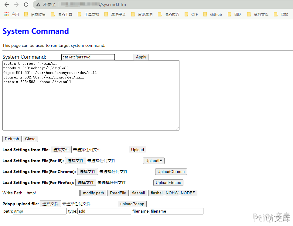 固件中存在一个asp文件为 syscmd.asp 存在命令执行