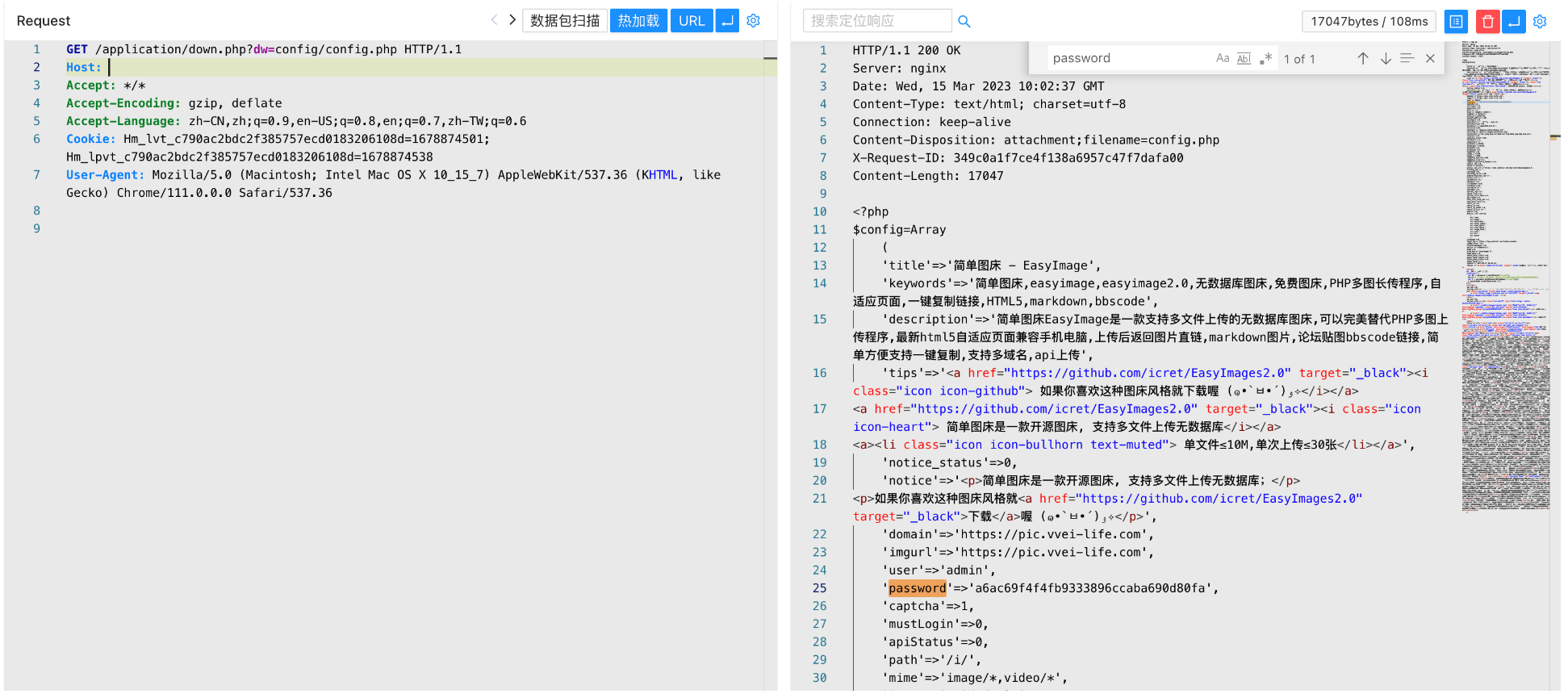 EasyImage down.php 文件存在任意文件读取漏洞,攻击者通过漏洞可以获取服务器任意文件