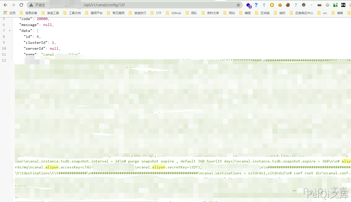 由于/api/v1/canal/config 未进行权限验证可直接访问导致账户密码、accessKey、secretKey等一系列敏感信息泄露