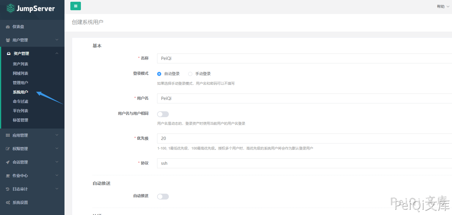 资产管理 --> 系统用户