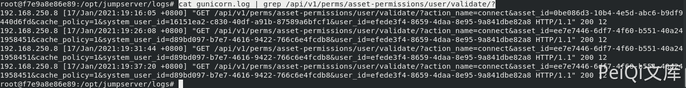 cat gunicorn.log | grep /api/v1/perms/asset-permissions/user/validate/?
