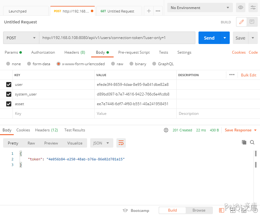 可以看到这里调用时必须需要 user asset system_user 这三个值,再获取一个20秒的 token