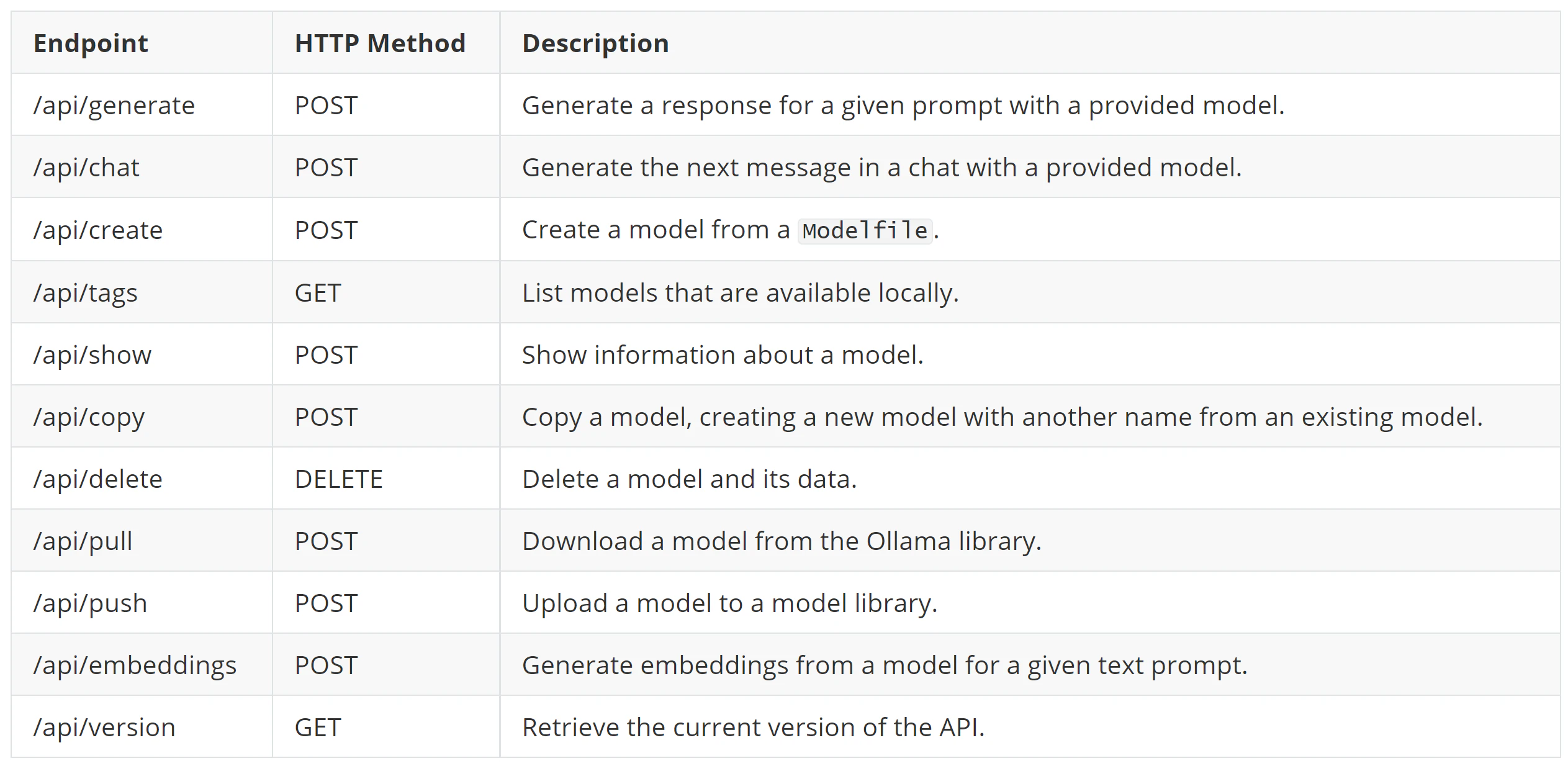 Ollama 公开了多个执行各种操作的 API endpoints,其中, /api/pull 可用于从 Ollama 下载模型。