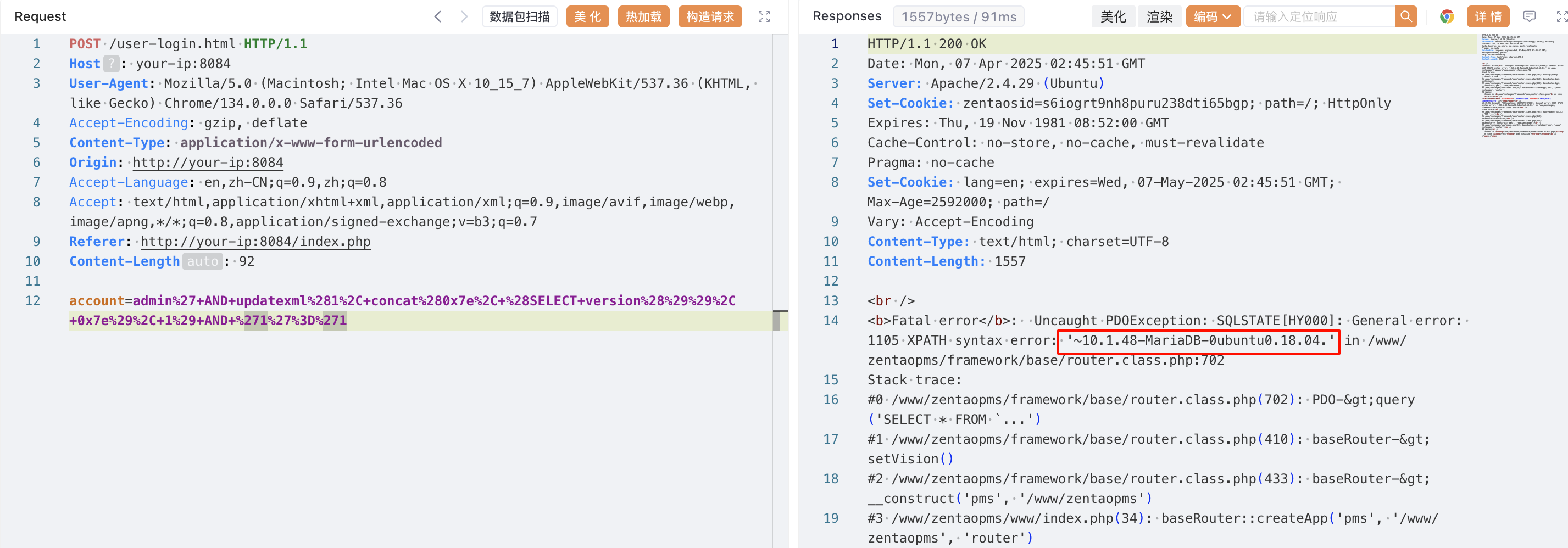 禅道项目管理系统 v16.5 版本未对输入的 account 参数内容作过滤校验,导致攻击者拼接恶意 SQL 语句执行。