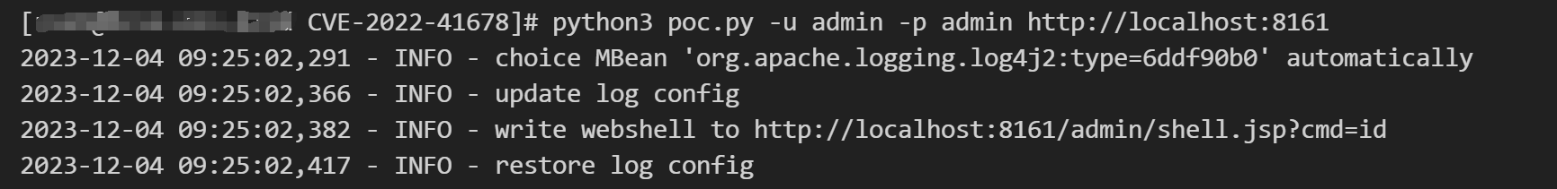 使用poc脚本来复现完整的过程(使用--exploit参数指定使用的方法):