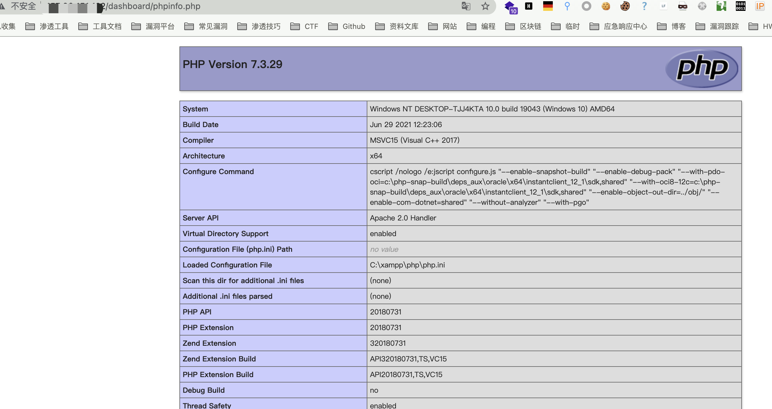 XAMPP存在信息泄露漏洞/dashboard/phpinfo.php 访问权限控制不严格,攻击者可获取系统敏感信息。
