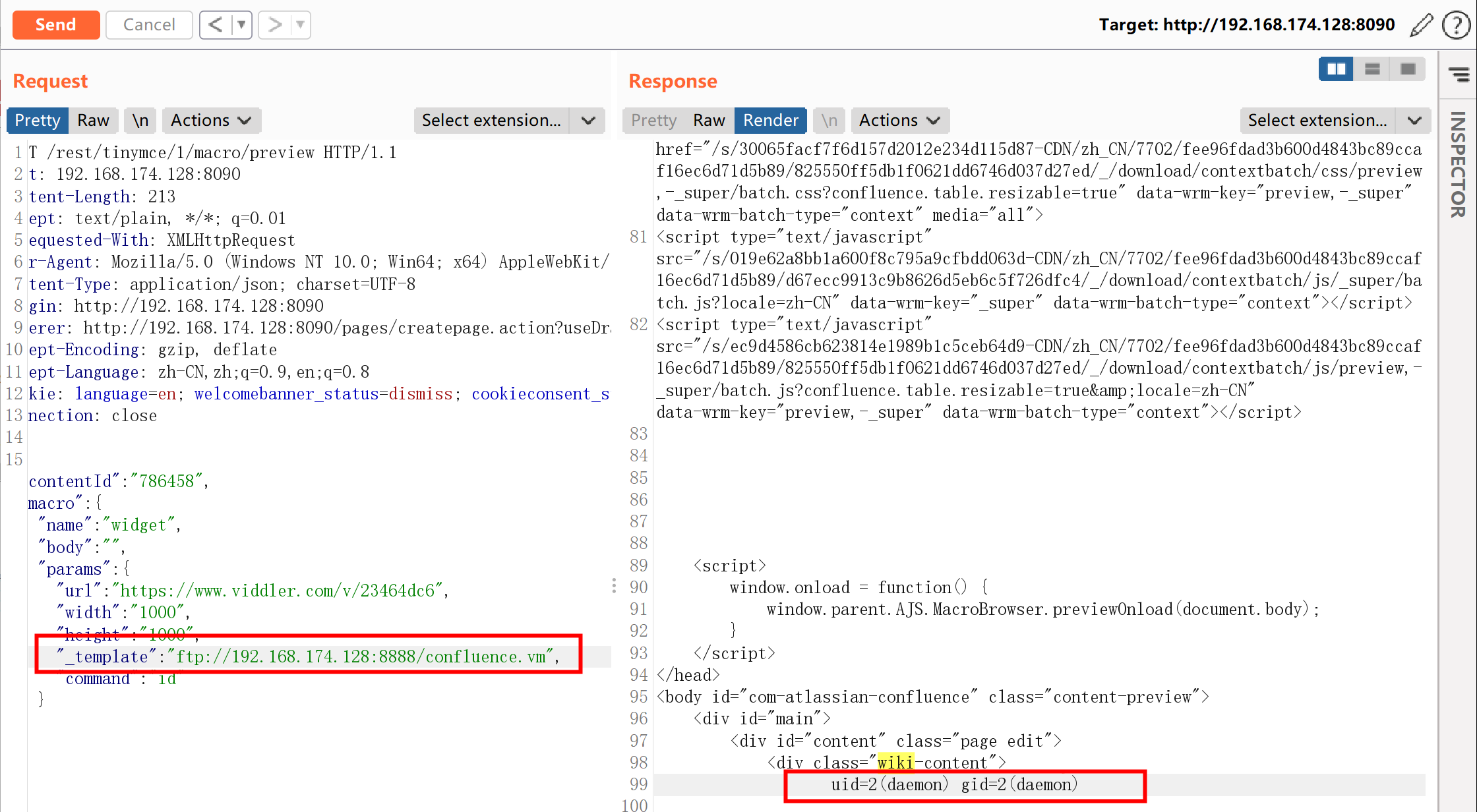 修改_template参数的值为ftp://localhost:8888/confluence.vm并在其后加入command值,设置为id