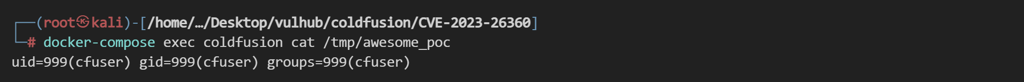 可见,id命令的执行结果已经被写入`/tmp/awesome_poc: