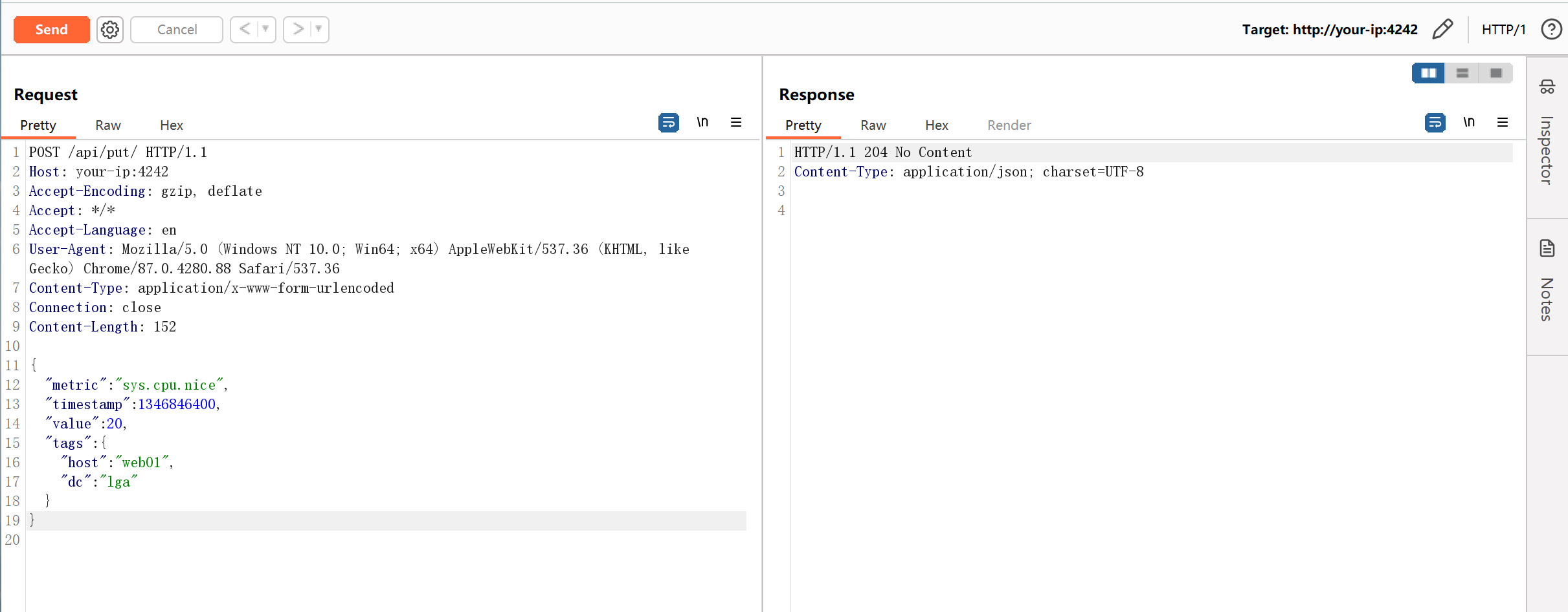 发送如下数据包,其中参数m的值必须包含一个有数据的 metric: