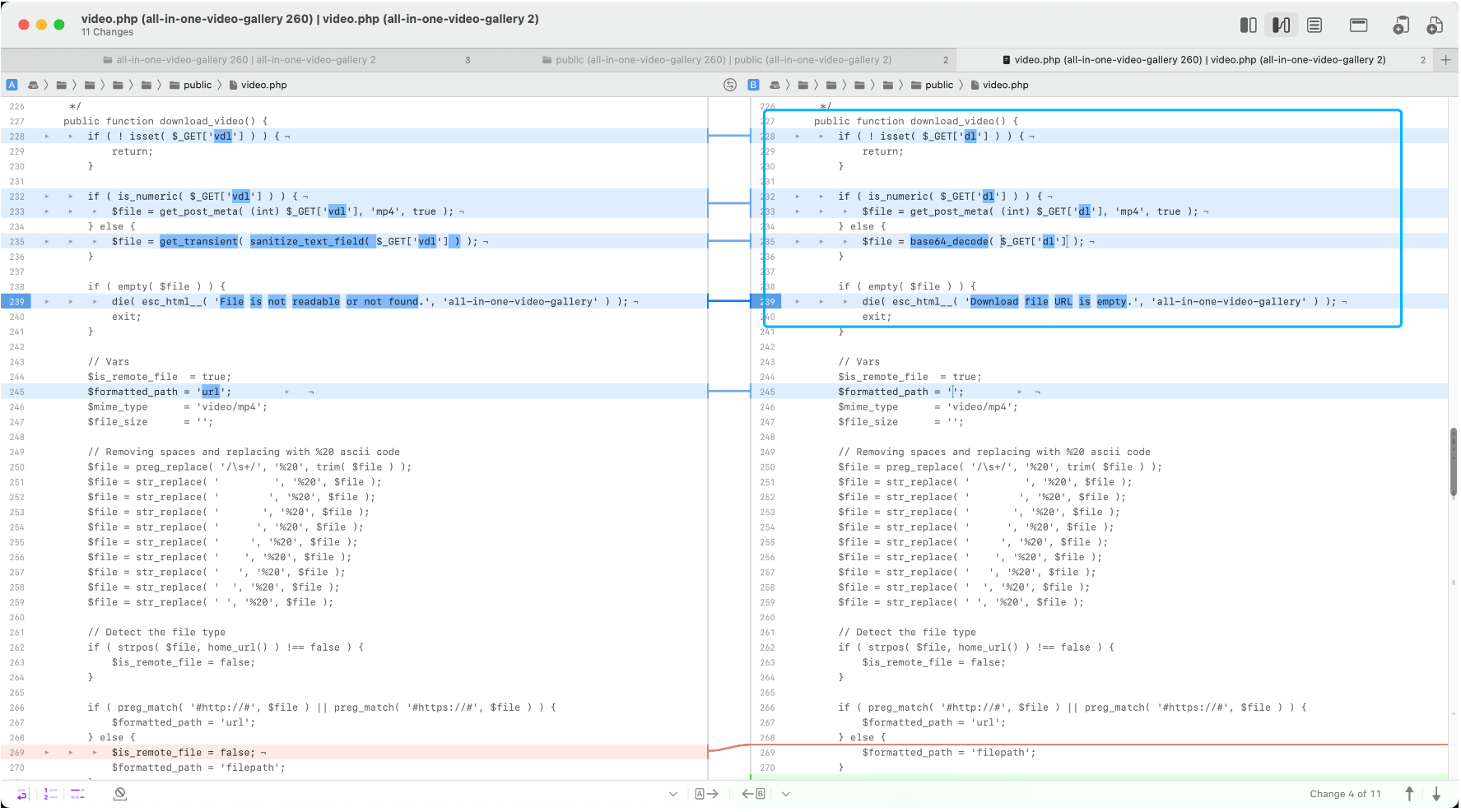 对比漏洞修复的文件找到出现漏洞的文件 wp-content/plugins/all-in-one-video-gallery/public/video.php