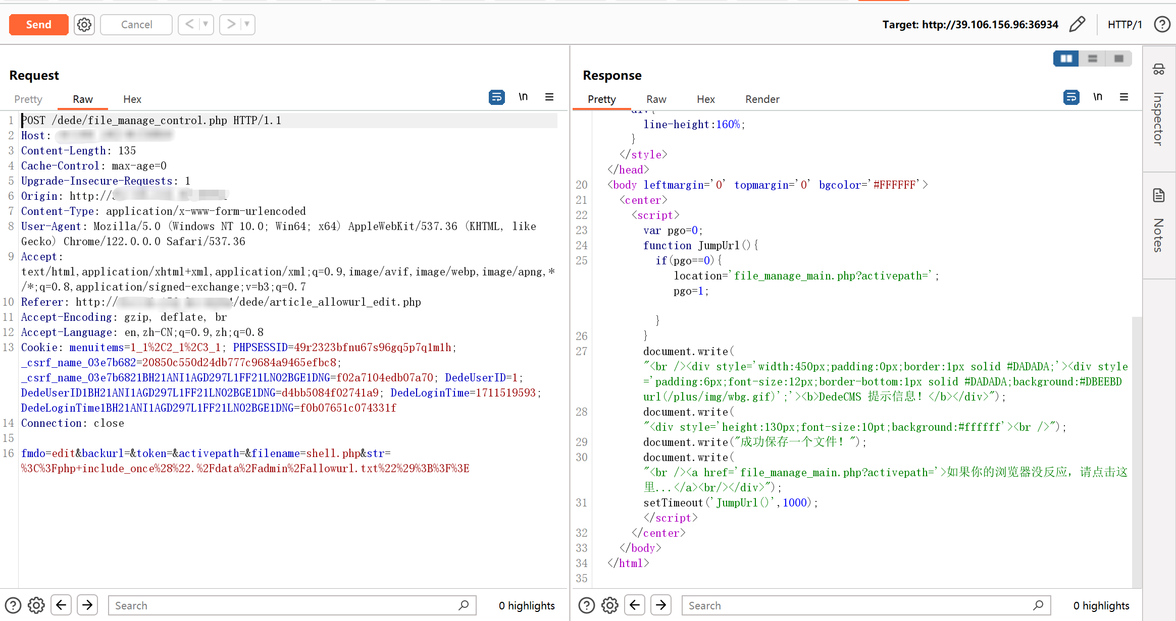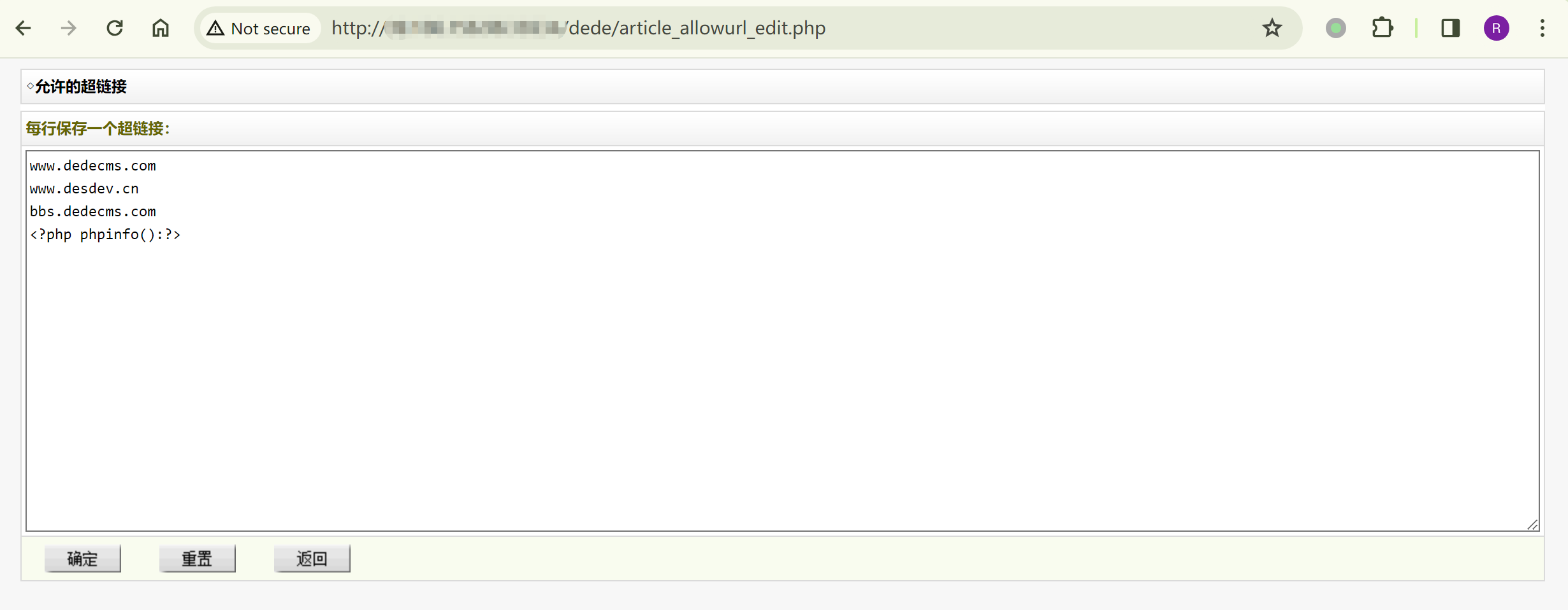 Referer: http://<YOUR_IP>/dede/article_allowurl_edit.php