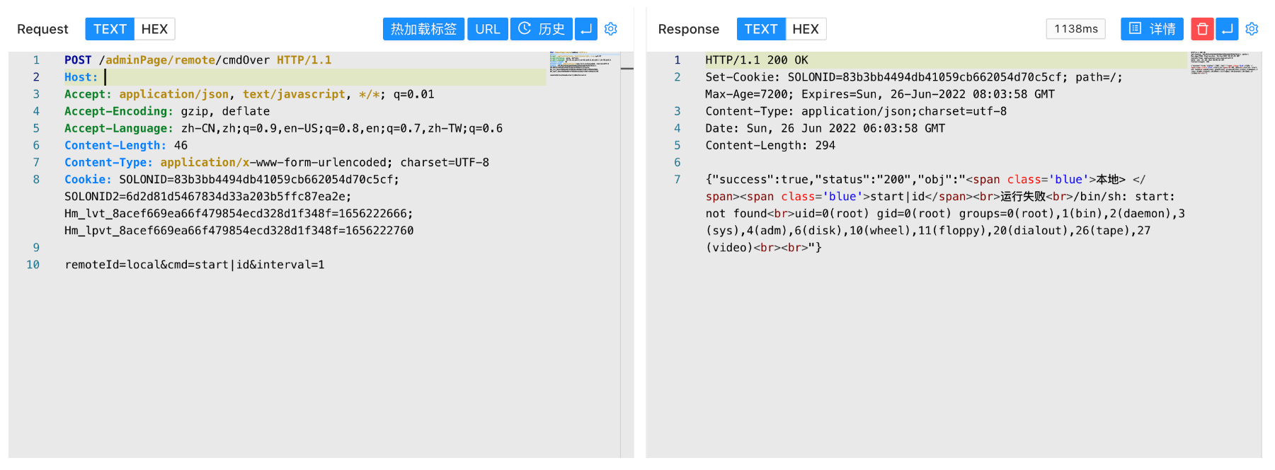 POST /adminPage/remote/cmdOver remoteId=local&cmd=start|id&interval=1