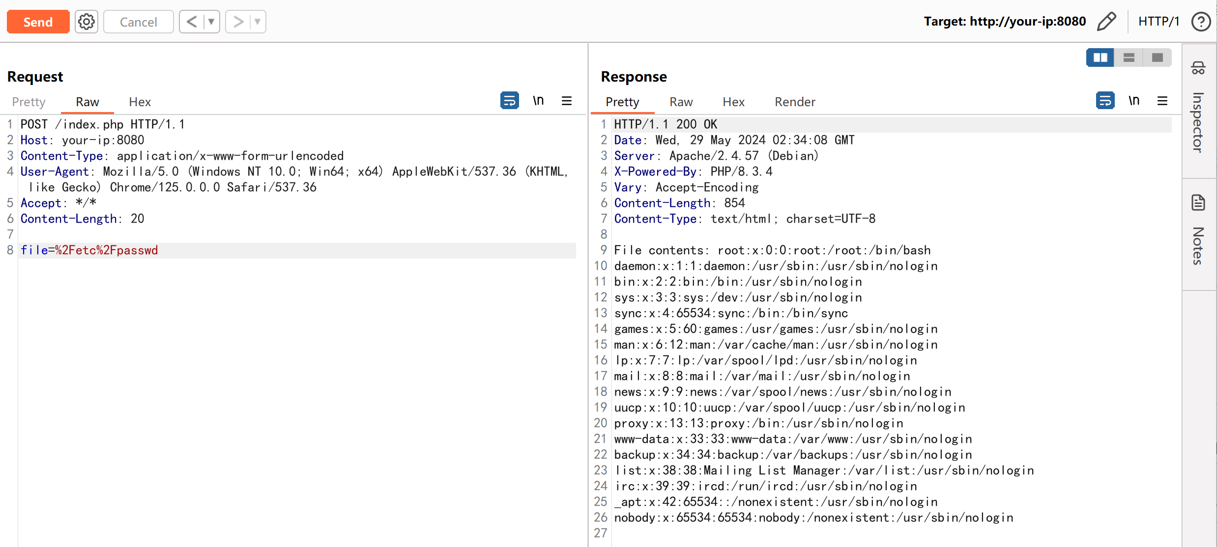 服务启动后,你可以通过 POST 请求读取 /etc/passwd 文件: