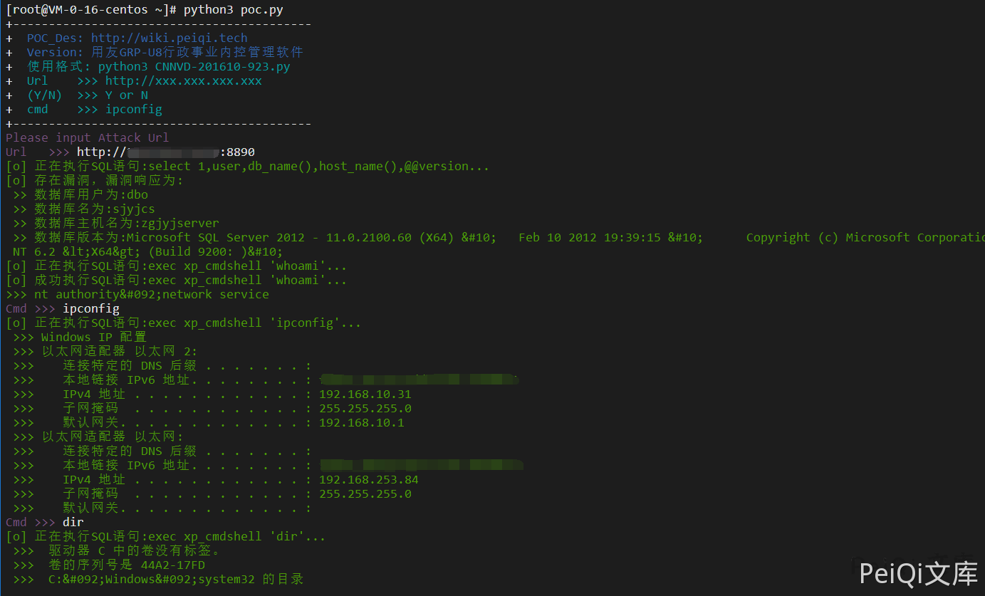 用友GRP-u8存在XXE漏洞,该漏洞源于应用程序解析XML输入时没有进制外部实体的加载,导致可加载外部SQL语句,以及命令执行