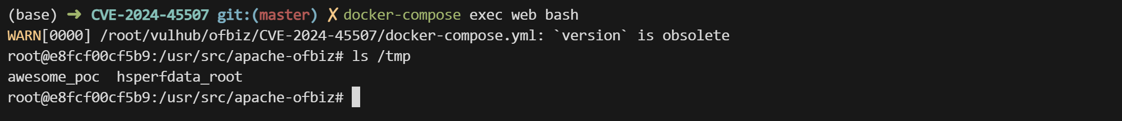 命令 touch /tmp/awesome_poc 已经被成功执行: