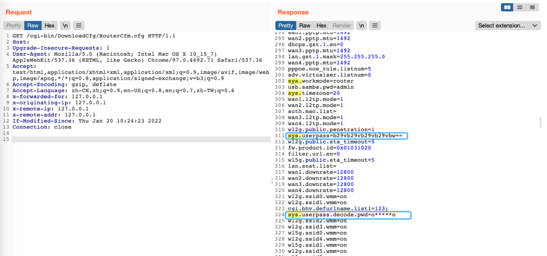 Tenda 企业级路由器 RouterCfm.cfg 配置文件可在未授权的情况下被读取,导致账号密码等敏感信息泄漏