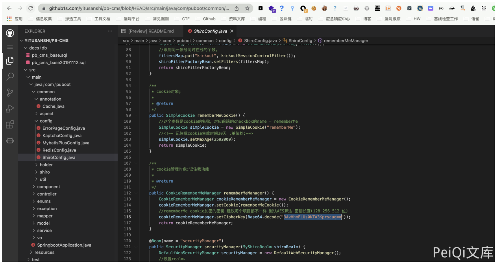 Pd-CMS存在Shiro默认密钥攻击者通过已知的密钥将会造成Shiro远程命令执行漏洞