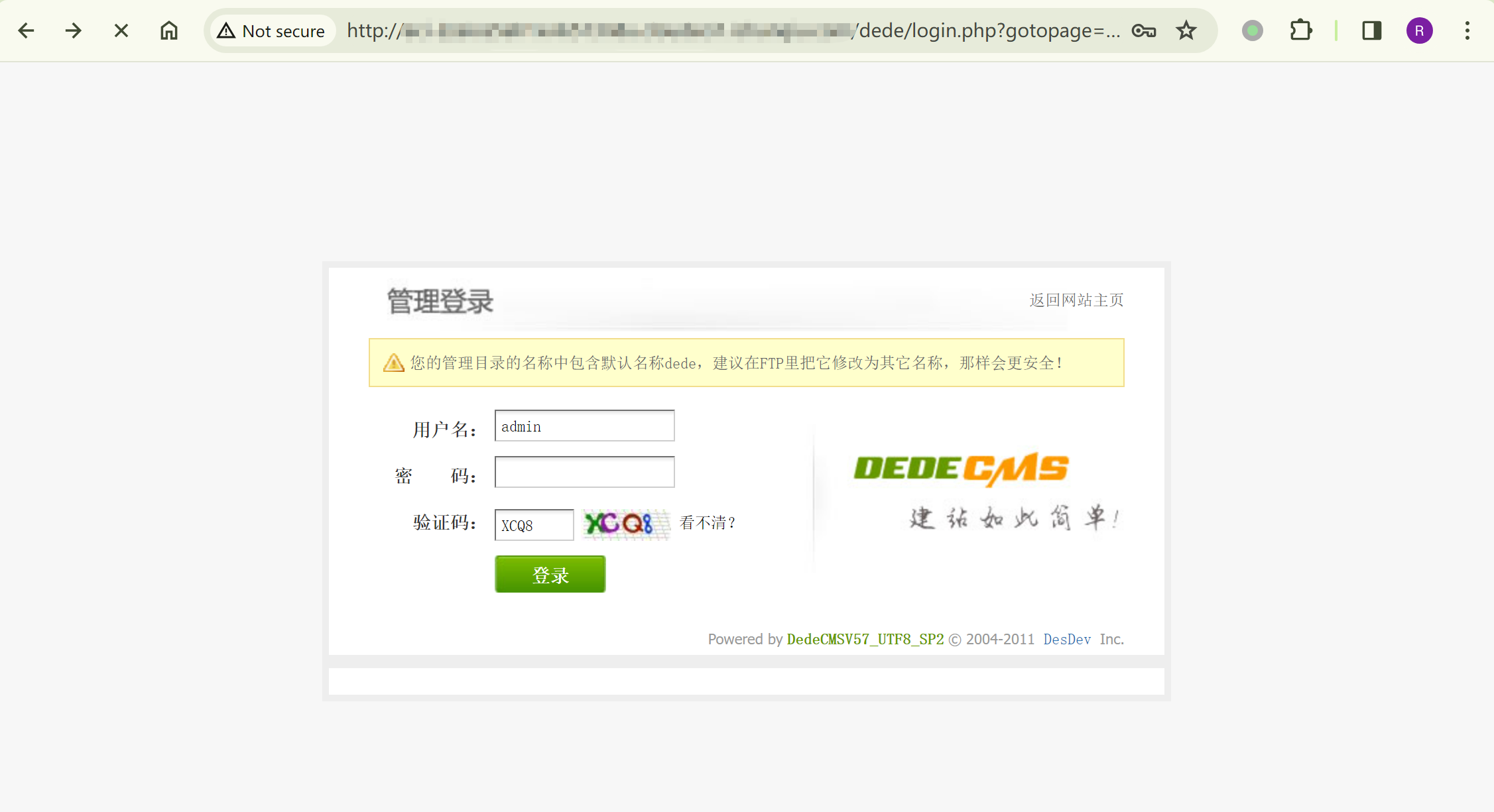 默认后台登陆路径 /dede/login.php 或 /uploads/dede/login.php ,默认用户名密码 admin/admin。