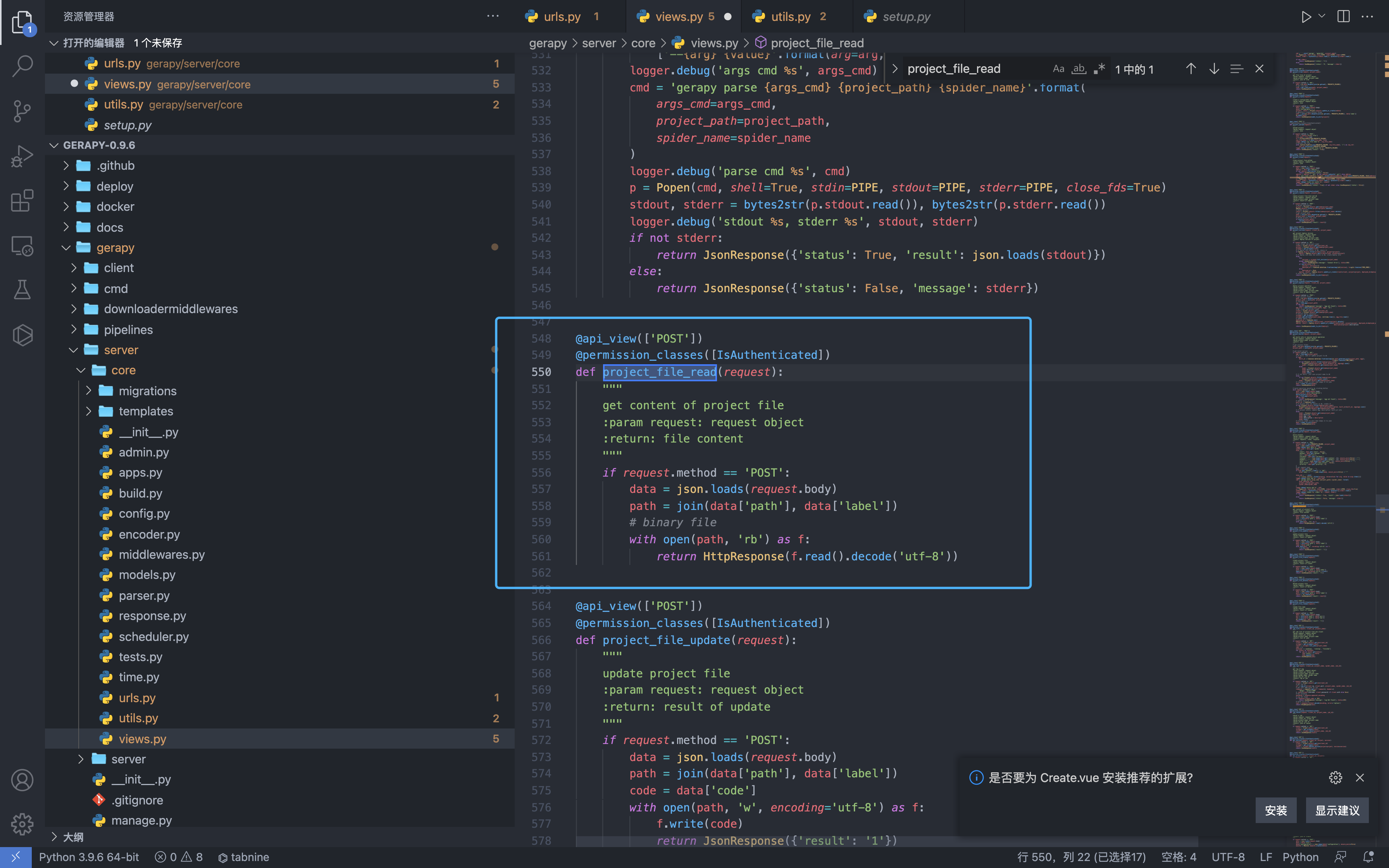 出现漏洞的文件为 gerapy/server/core/views.py