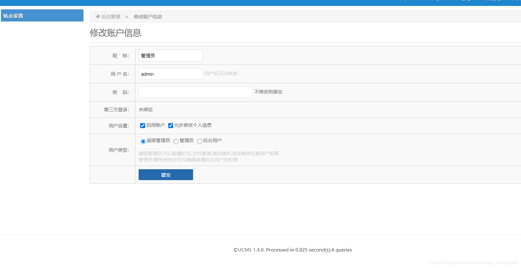 UCMS v1.4.8版本存在安全漏洞,该漏洞源于文件写的fopen()函数存在任意命令执行漏洞,攻击者可利用该漏洞可以通过该漏洞访问服务器。