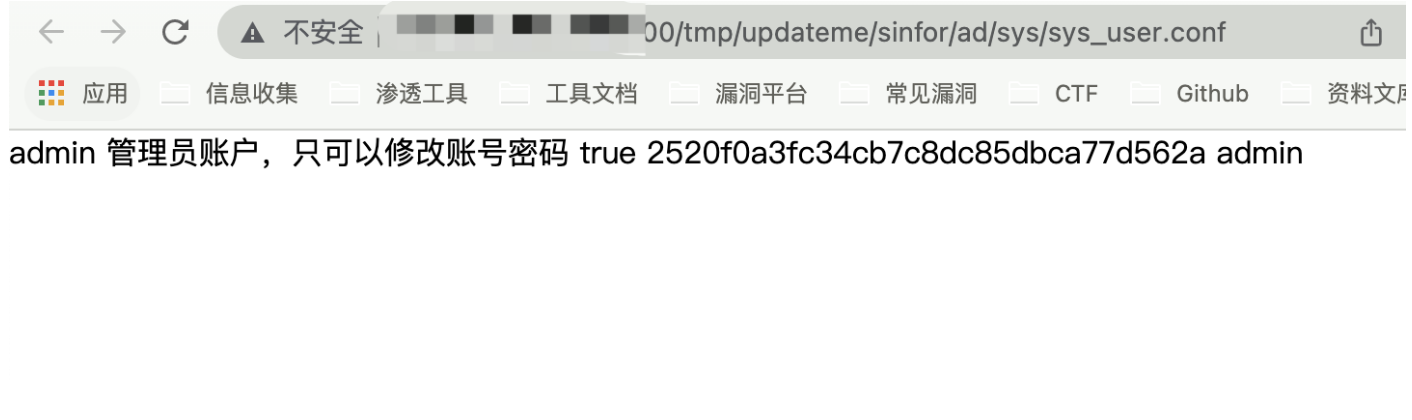深信服 应用交付管理系统 文件sys_user.conf可在未授权的情况下直接访问导致账号密码泄漏