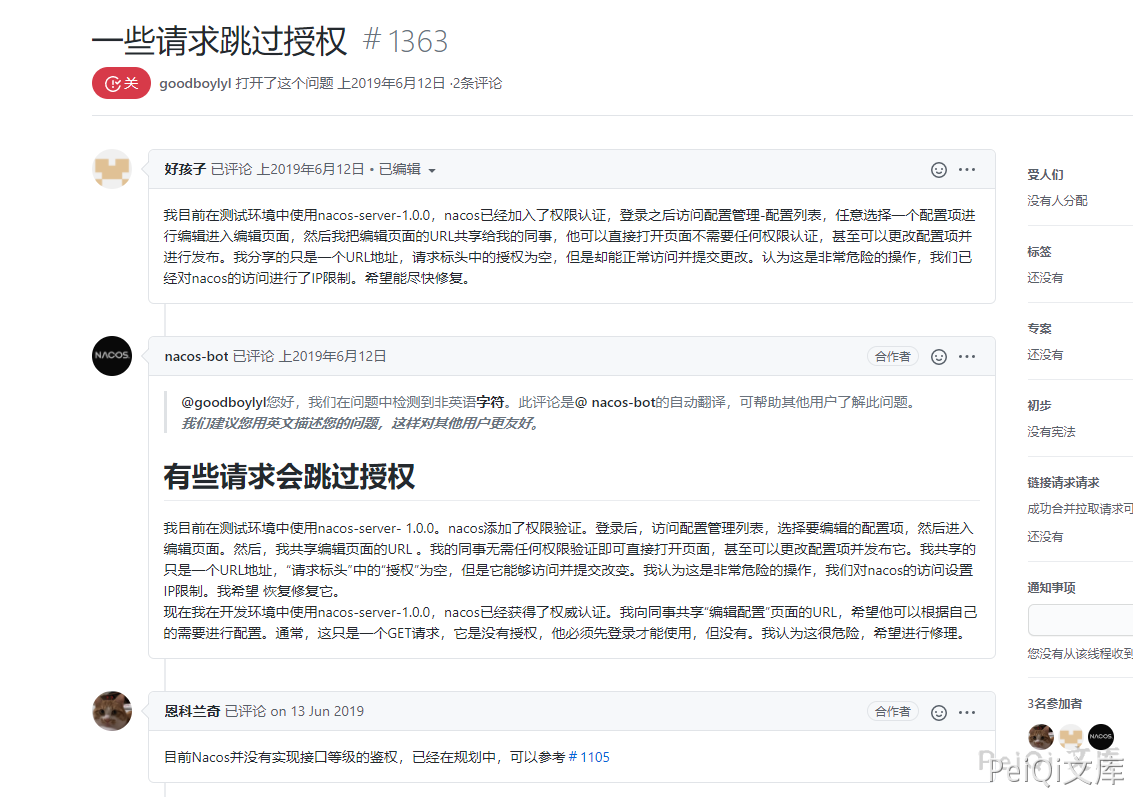 可以再项目的 issues 中看到大量的关于越权的安全问题的讨论