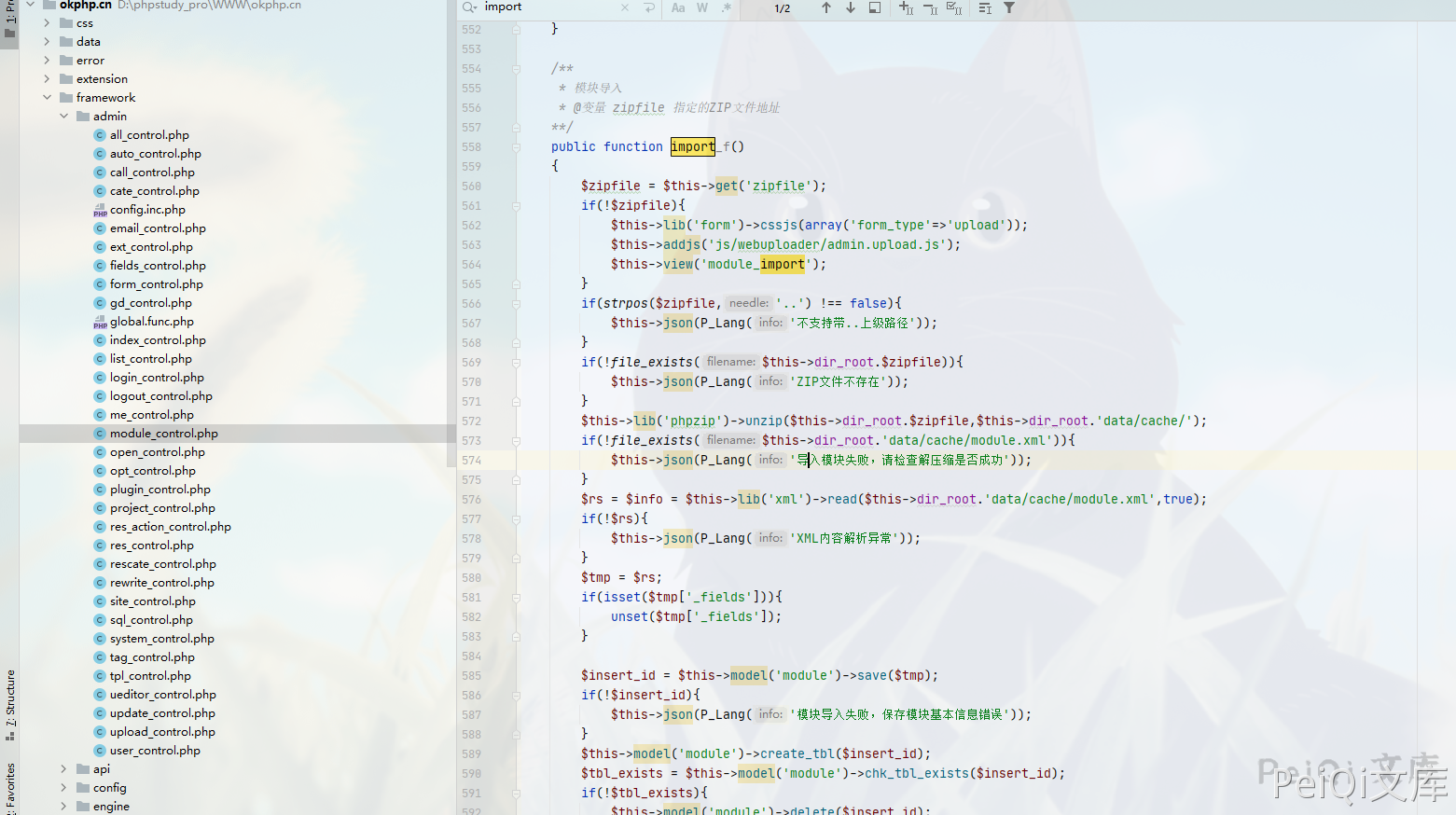 这里放包后发现调用了另一个方法,跟踪下代码 framework/admin/module_control.php 中的 import_f方法