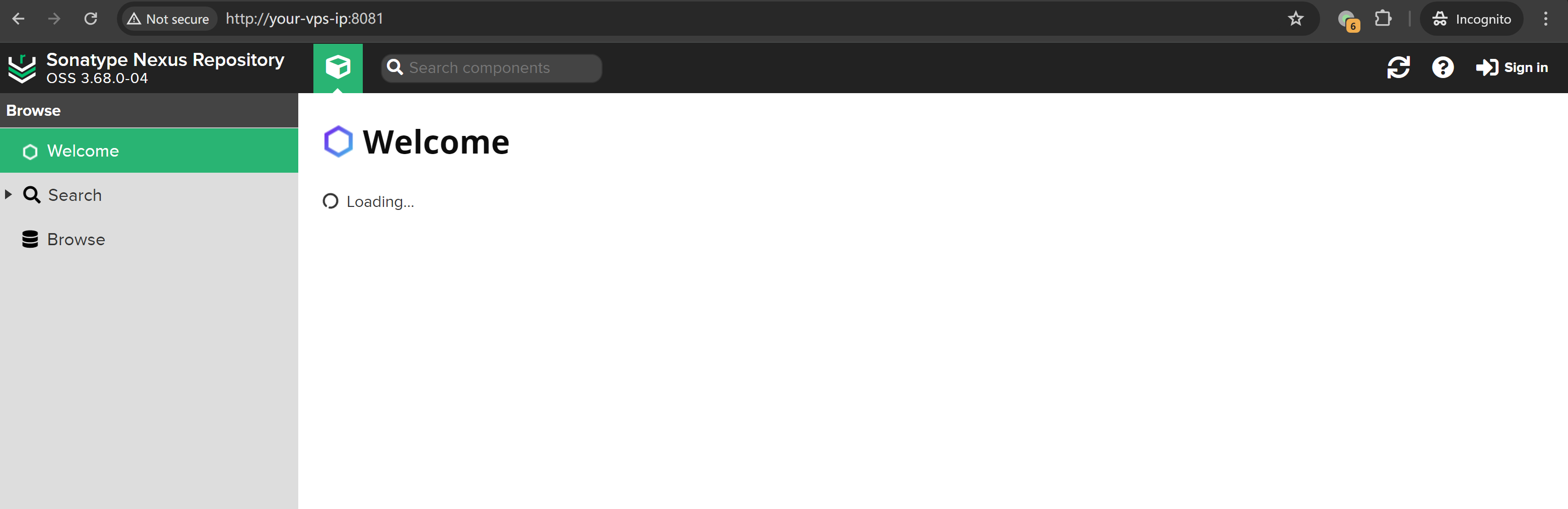 环境启动后,访问http://your-ip:8081即可看到 Nexus 的默认页面。