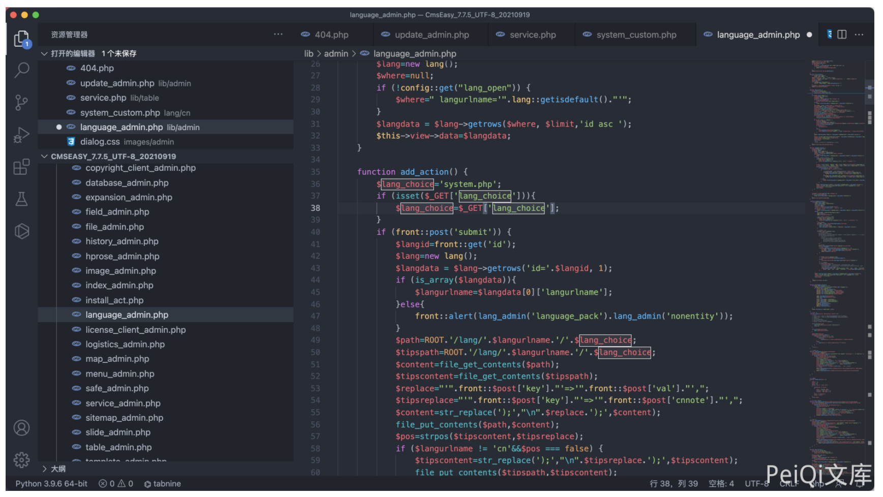 CmsEasy 后台存在命令执行漏洞,通过文件 language_admin.php 对部分文件进行写入操作,导致任意文件写入