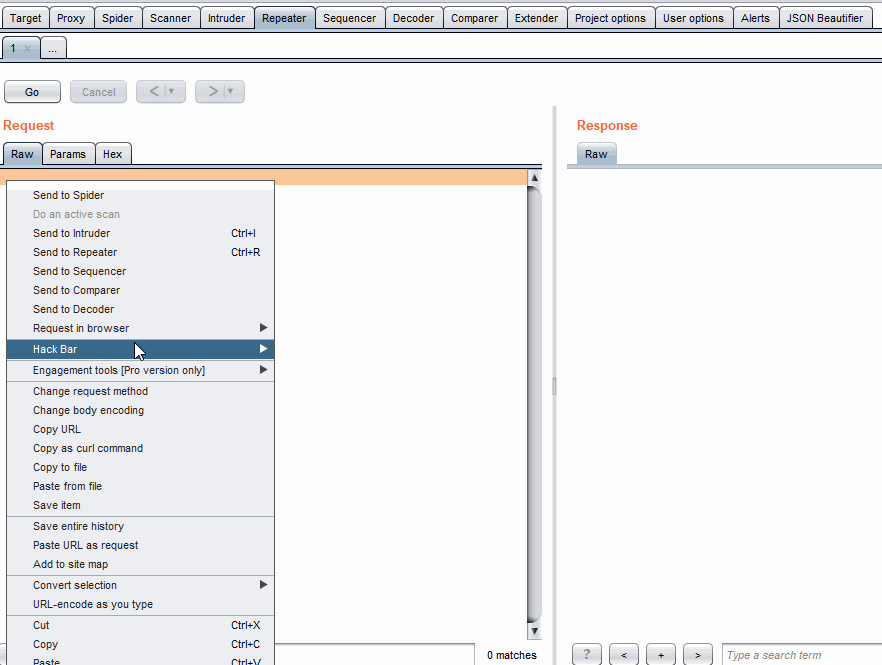 • HackBar.jar --- 做渗透测试的早一点的都知道老版本火狐的HackBar插件吧这个Burpsuite的类似的功能详细的可以看项目源地址看 — HackBar 动图如下: