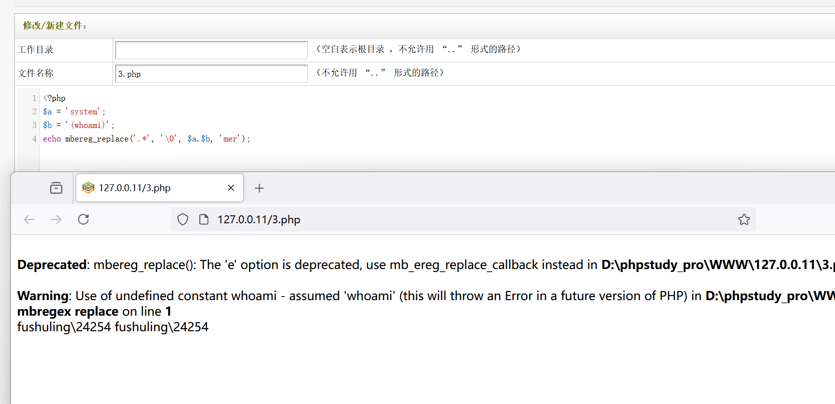 作用类似于preg_replace,支持传入e模式的正则表达式,不过这个别名在PHP7.3被移除了,只能在7.2及以下使用