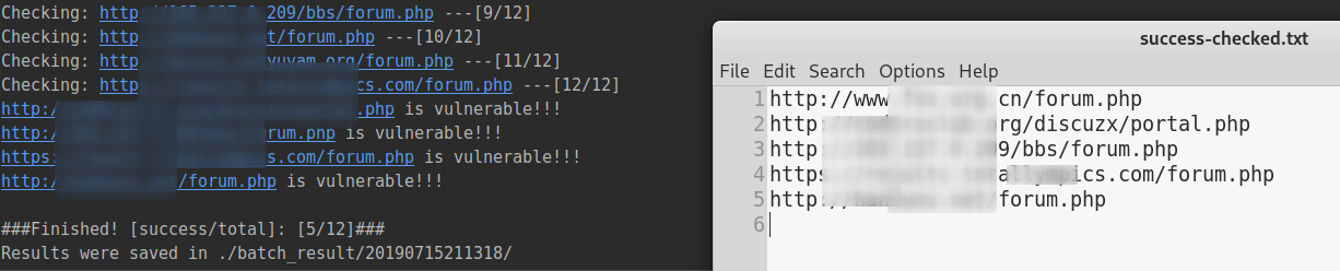 使用时加上漏洞PHP页面(如forum.php,portal.php),直接写域名可能会重定向导致误报!