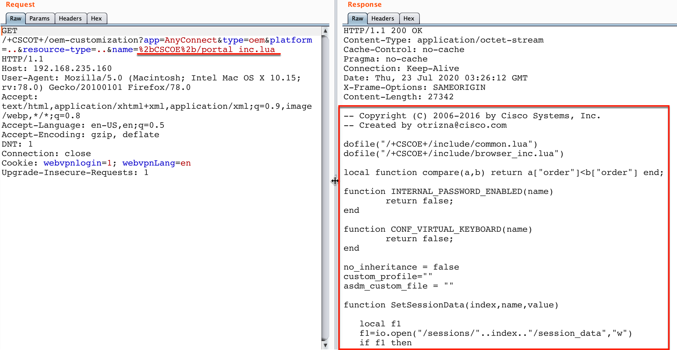For example to read "/+CSCOE+/portal_inc.lua" file. https://<domain>/+CSCOT+/translation-table?type=mst&textdomain=/%2bCSCOE%2b/portal_inc.lua&default-language&lang=../